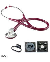 The Top Cardiology Stethoscope is the ideal stethoscope for cardiologists. The chestpieces of KaWe Top Cardiology Stethoscopes are made of solid stainless steel. High-quality workmanship and technology have resulted in stethoscopes with excellent acoustics. This high-quality stethoscope has a single-tube system with an integrated stainless steel ear hook, and soft ear tips ensure optimal wearing comfort. Each stethoscope comes with two pairs of replacement ear tips, a replacement diaphragm, and a name tag.